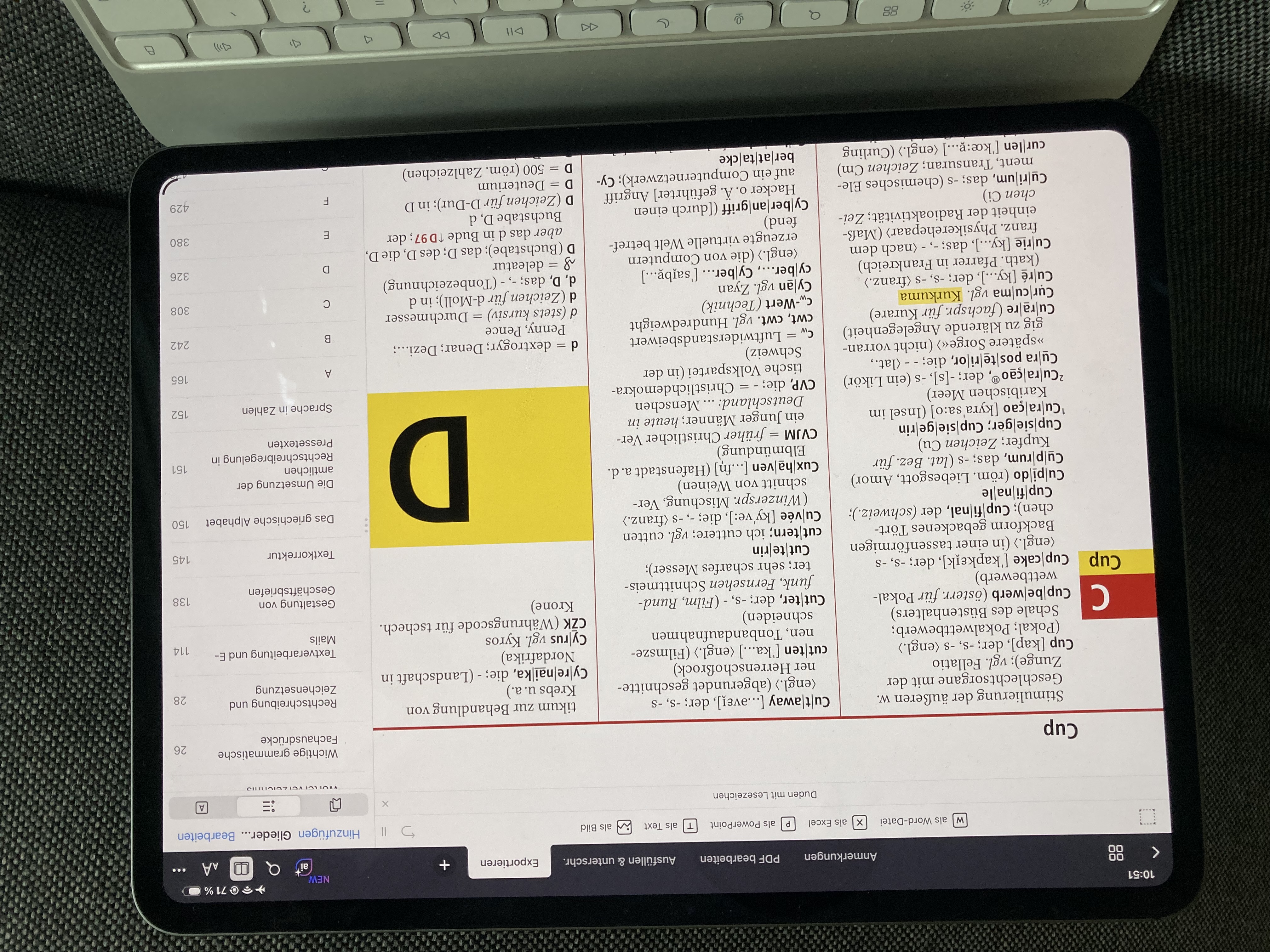 ein iPad mit der geöffnet PDF-Datei des Duden