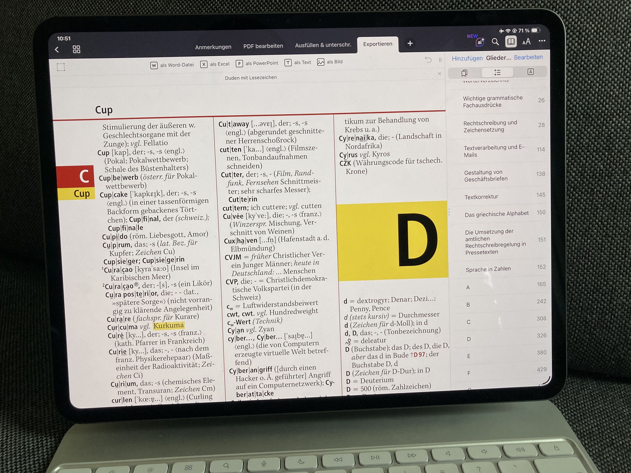 ein iPad mit der geöffnet PDF-Datei des Duden